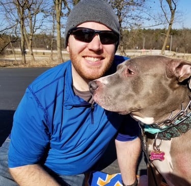 Tell us about your background: I love all pets, from dogs the size of small horses, to kittens that can be held in the palm of your hands, I love them all! Growing up, I was around a variety of pets from the family cat, rabbits, and many fish, I always took a fascination to their world, knowing their world is whatever you make it. As a child, one of the first questions I would always ask a new friend is if they had any pets; if they did, I knew they had a better likelihood of being a good friend—and I knew I would be able to play with and enjoy the company of not only another human friend, but a furry one too! Bonus! Albeit having many pets throughout my life, my longest of nearly 13 years that lived to be 15+ was Hannah, our Am Staff/Pittie, that was my shadow. She was pretty caring when I adopted her but the relationship we forged grew her into one of the most personable dogs a person could be around. The reflection of all current and past pets lives on when I walk or sit a pet for Mint Leash Club, from the pets that love to cuddle, ones that are high energy, and the ones that sleep and prefer the comfort of a bed, I love them all!